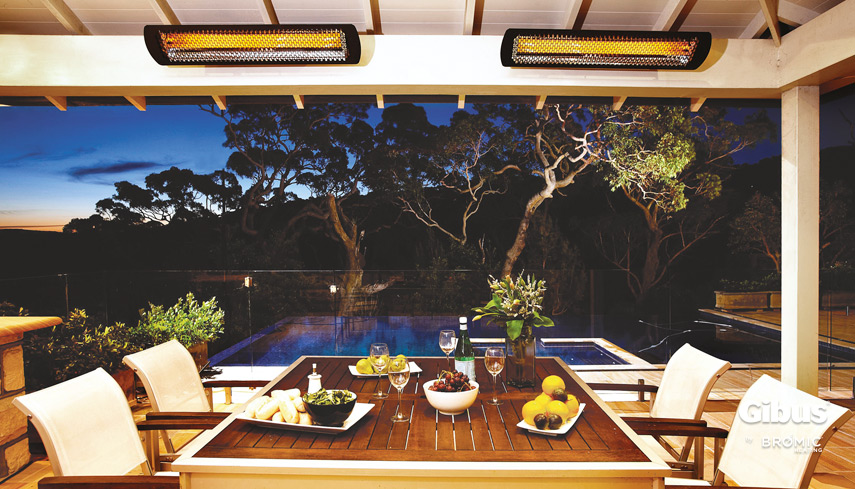 The heating units are equipped with a spectrum reflector for the optimal emission of radiant heat and an IPX4 insulation level for weather resistance. Wall or ceiling brackets are included; adjustable heating angle (up to 45°) controlled by an on/off touch switch.